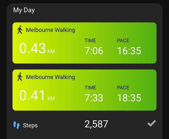 One thing I wasn’t happy about was once I could walk 1 km, I discovered I’d lost another point on my VO2 Max reading. I was devastated. While I don’t do high intensity exercise and therefore don’t expect a high VO2 Max reading, I do want something healthier than “poor”! Thankfully, I’ve worked hard enough this week (shown below) and last week to recover that measly one point. The lost of the one point had worried me because it was the continuation of a downward trend that started early 2023 and so desperately want to turn it around and get back to where I was.